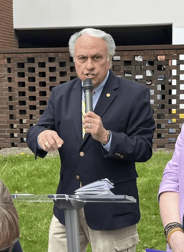 Acknowledging the protesters in the crowd, Representative Eddie Day Pashinski said, “We have people here who disagree with us. I welcome disagreement and discussion. I applaud your involvement and energy.